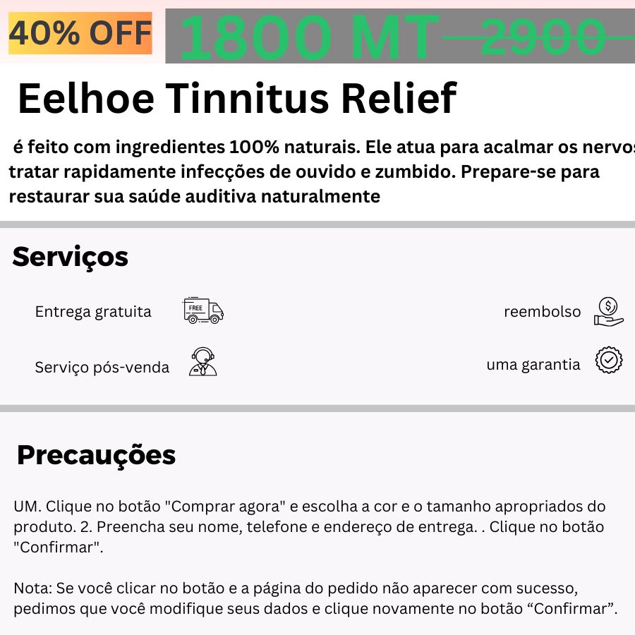 Milhares de pessoas em todo o mundo testaram eelhoe tinnitus relief e testemunharam resultados surpreendentes. Você também pode experimentar este produto revolucionário e se livrar do zumbido