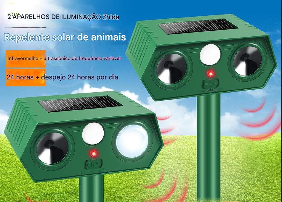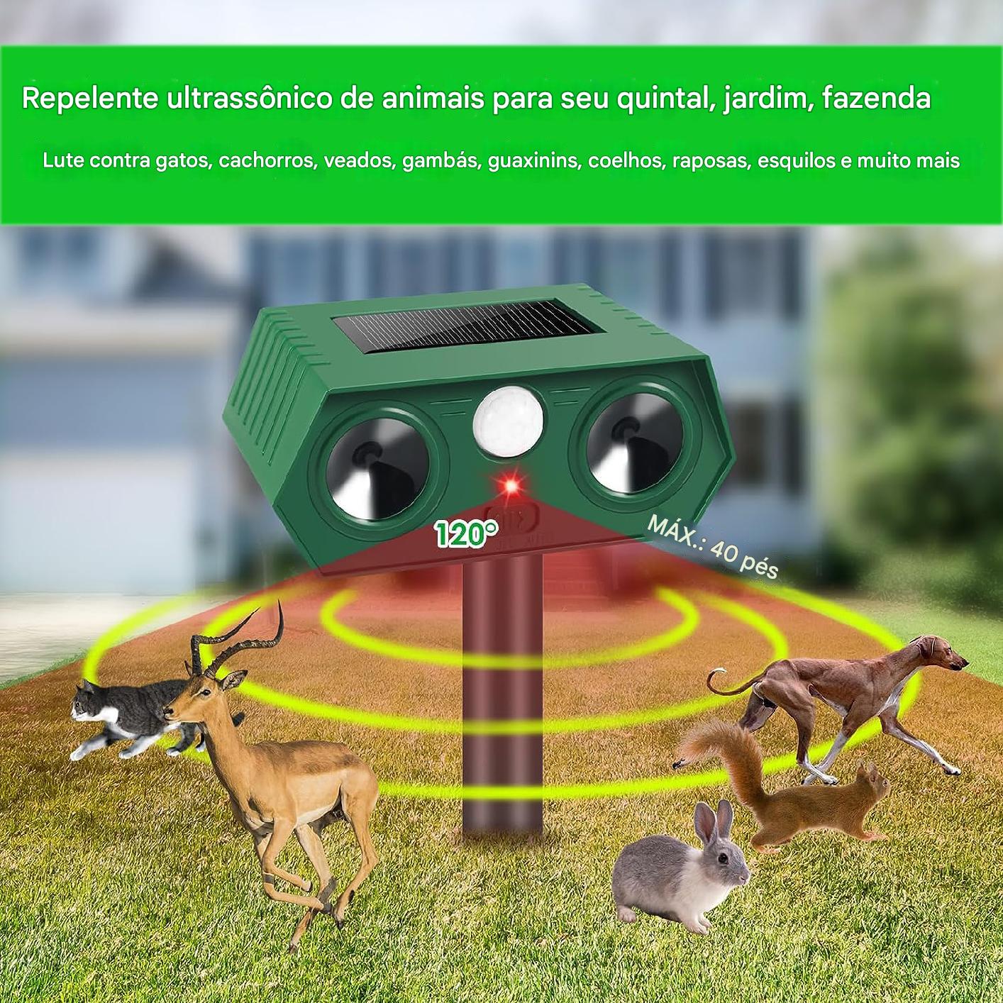 Repelente ultrassônico de animais, repelente de pragas movido a energia solar, movimento ativado, gato, cão, dissuasor, sensor de movimento à prova d'água